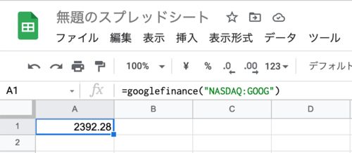 Googleスプレッドシートには googlefinance 関数が用意されており、現在の株価を取得することができる。例えば、Alphabet(Googleの持株会社)の株価であれば、以下のように =googlefinance("NASDAQ:GOOG") と入力すると取得できる。NASDAQ は証券取引所コー…